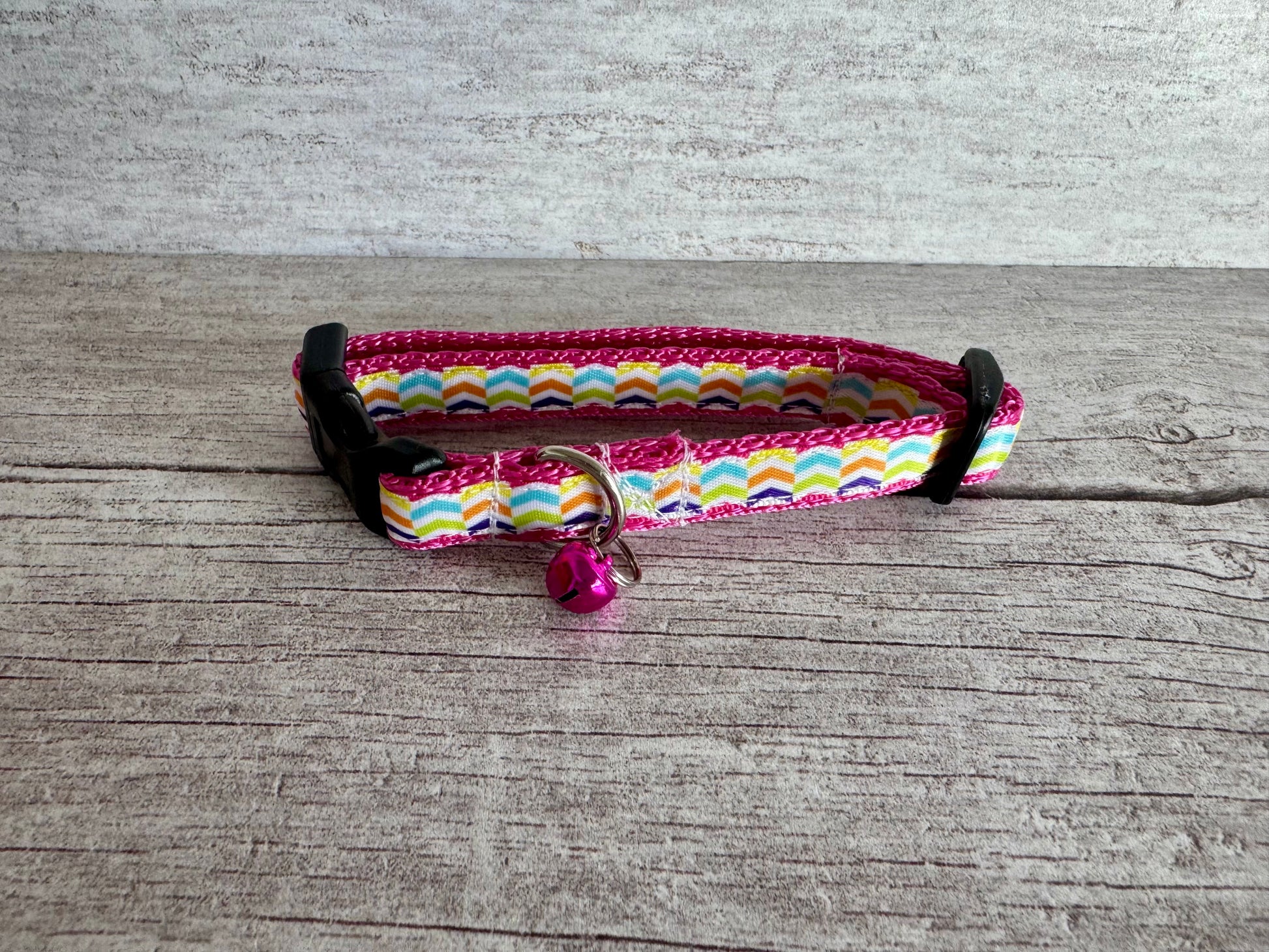 Retro Pattern Cat Collar — Bring a splash of sunshine to your cat's wardrobe with this retro cat collar, handmade in the UK by Dottie's Pet Boutique. Bursting with colourful retro pattern designs, it is the perfect pick for felines who deserve a fresh, look all year round.